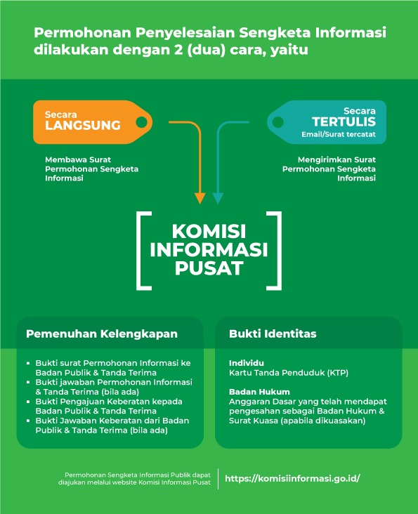 Setiap pemohon informasi publik dapat mengajukan keberatan secara tertulis kepada atasan Pejabat Pengelola Informasi dan Dokumentasi dengan alasan sebagaimana ditetapkan dalam pasal 35 Undang-Undang Nomor 14 Tahun 2008. Keberatan diajukan oleh Pemohon Informasi Publik dalam jangka waktu paling lambat 30 (tiga puluh) hari kerja setelah yang bersangkutan menemukan alasan keberatan.